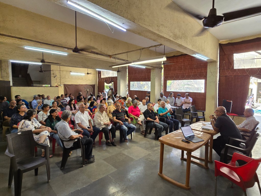 61 physically present members voted in affirmation (YES) for redevelopment of society buildings, while rest 8 physically present members voted against (NO) redevelopment of society buildings.