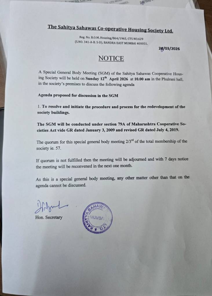 It was then resolved to initiate the procedure and process for redevelopment of the society buildings with the first step being appointment of PMC with the list of works to be done, as under.